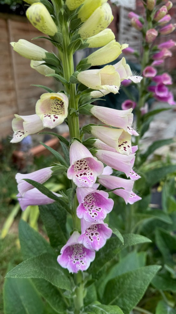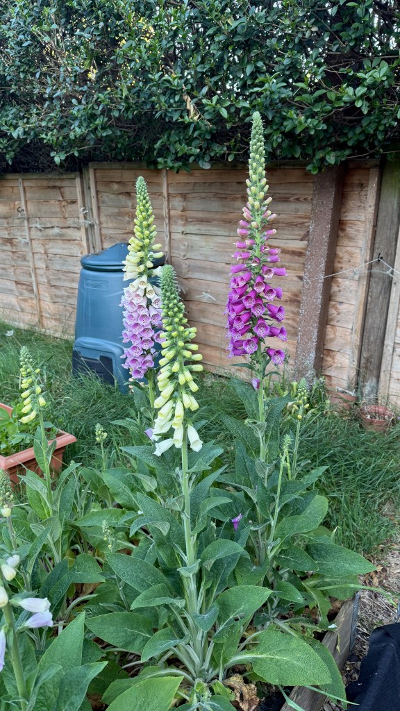 My foxgloves are weeks away from flowering. Supposedly the ones with absolutely no purple colouring in the petioles will flower white and can be selected as seedlings. I’m hoping I can put that to the test with self sowers on my allotment.