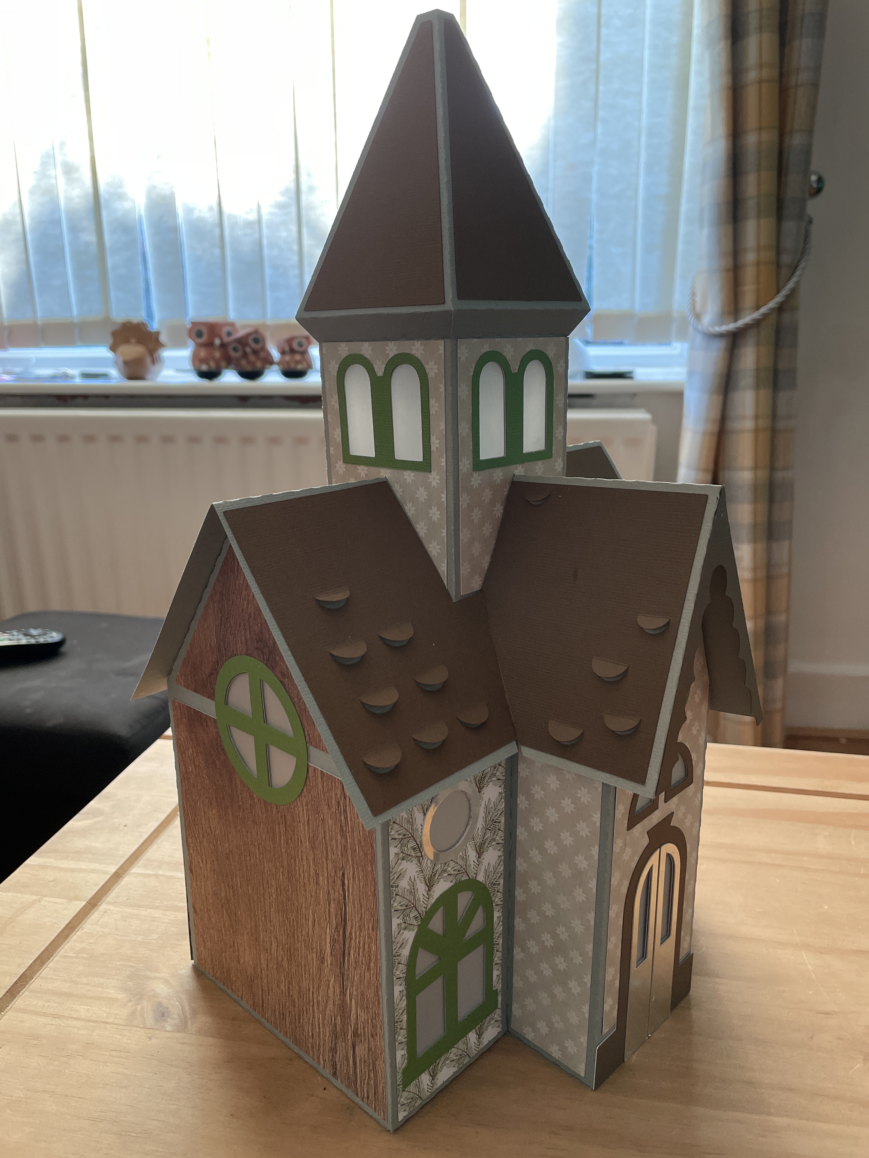My scrapbooking eventually expanded to include 3D paper crafting which is made so easy by the use of a Cricut machine. It is an electronic cutting machine that combined with software can be used to cut out any shape you can imagine. And I really do mean any shape. From simple cards to full blown fairy houses, I’ve spent the last two years or so working my way up from the simplest design to building houses, gazebos, watering cans, perfume bottles clocks and lampshades.
