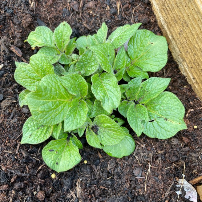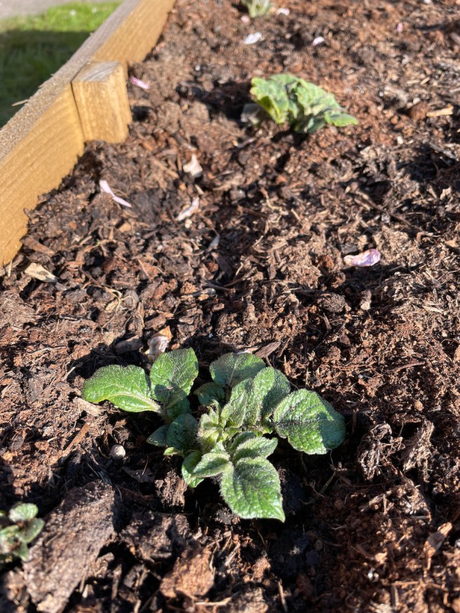 1. This is the first year I’ve grown potatoes in a raised bed. I’ve tried them a couple of times before in bags and I have four bags of main crop stashed near my shed, but I have a full raised bed of Charlotte second earlies. I faithfully chitted them indoors and planted them out in the middle of April. They took a couple of weeks to poke their heads out but this week’s growth has been incredible. I haven’t earthed them up – I’ve had lots of conflicting advice about earlies so I’m going to leave them as they are and hope for the best. The main crops in bags are being covered each time they poke through the compost.
