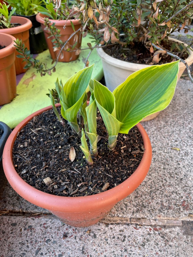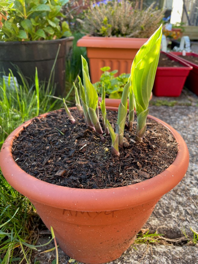4. A friend of my husband gifted us some hostas. I love them, I know they may end up as slug sacrifices but I still love them and hope they survive. I think I’m quite lucky that we have a major sparrow and blackbird population in the garden that seem to keep the slug situation under control so hopefully these guys will survive.