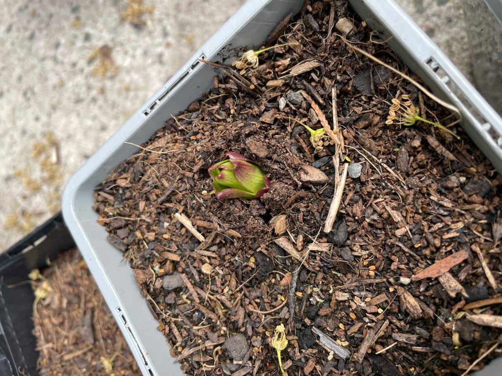 Six – Lilium. This is one of my rescue plant successes. Bear with me, I know it doesn’t look like much right now. I bought two lilies last summer – right at the end of the summer and they looked very sorry for themselves but they perked up and flowered in about September and were absolutely gorgeous. So I read up on what to do with them and so dutifully waited for the leaves to die back, dug up the bulbs, dried them, stored them in paper in the loft over winter and back in April I planted them all into their own pots. Then nothing. Not a peep out of them. I was this close (puts thumb and index finger together) to dumping the compost back into my standby pots and putting the plant pots away. Then this happened this morning. Tiny little signs of life. Not all the pots but some of them. And I’m going to take that as a win!