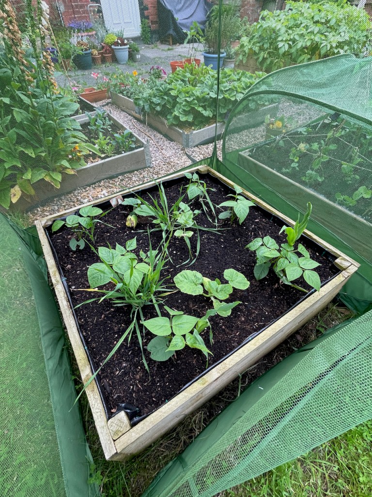 1. My Three Sisters bed – beans, sweetcorn and squash (also has a pumpkin in there for good measure). It’s growing nicely inside its cage to stop the naughty sparrows.