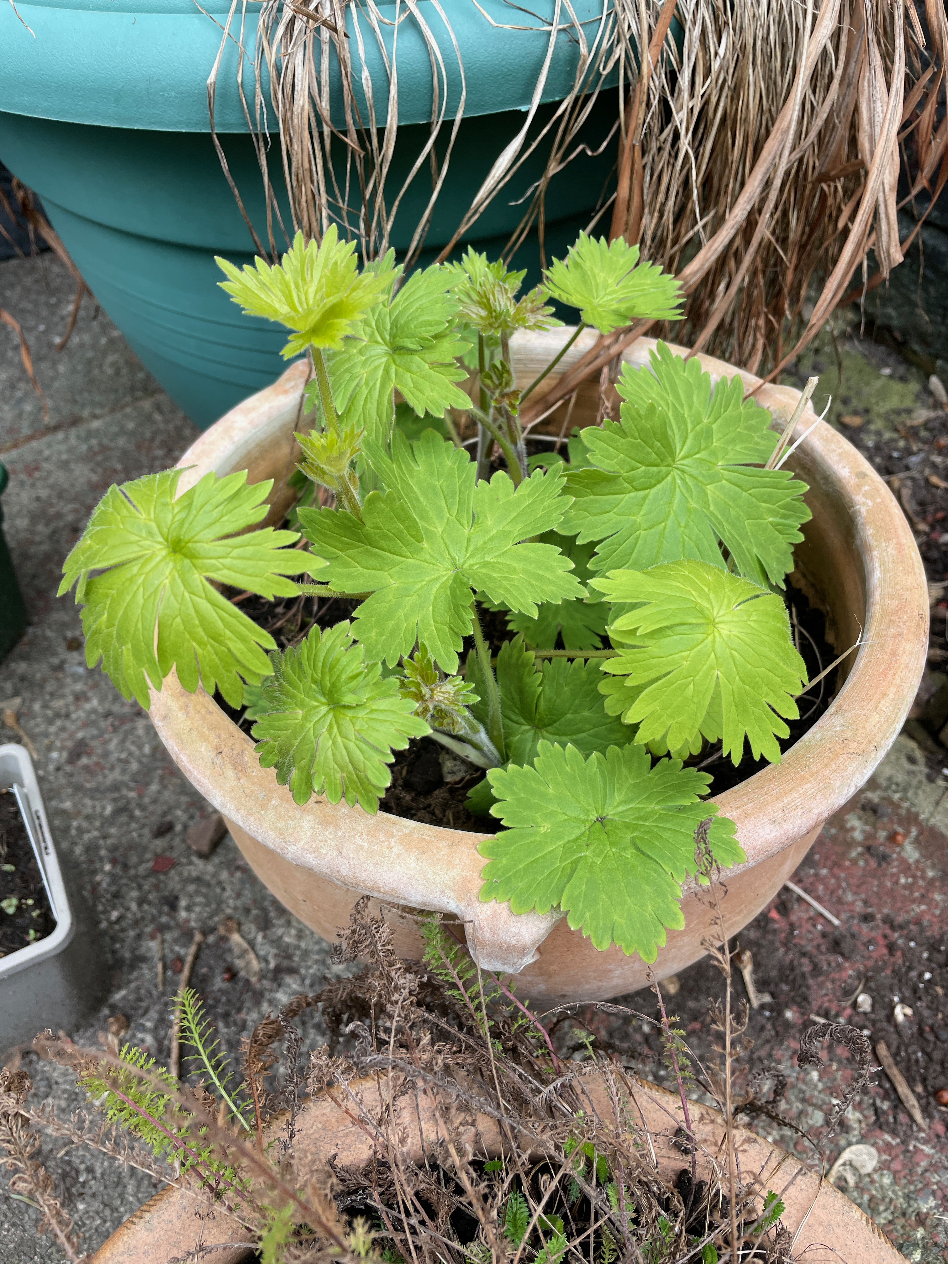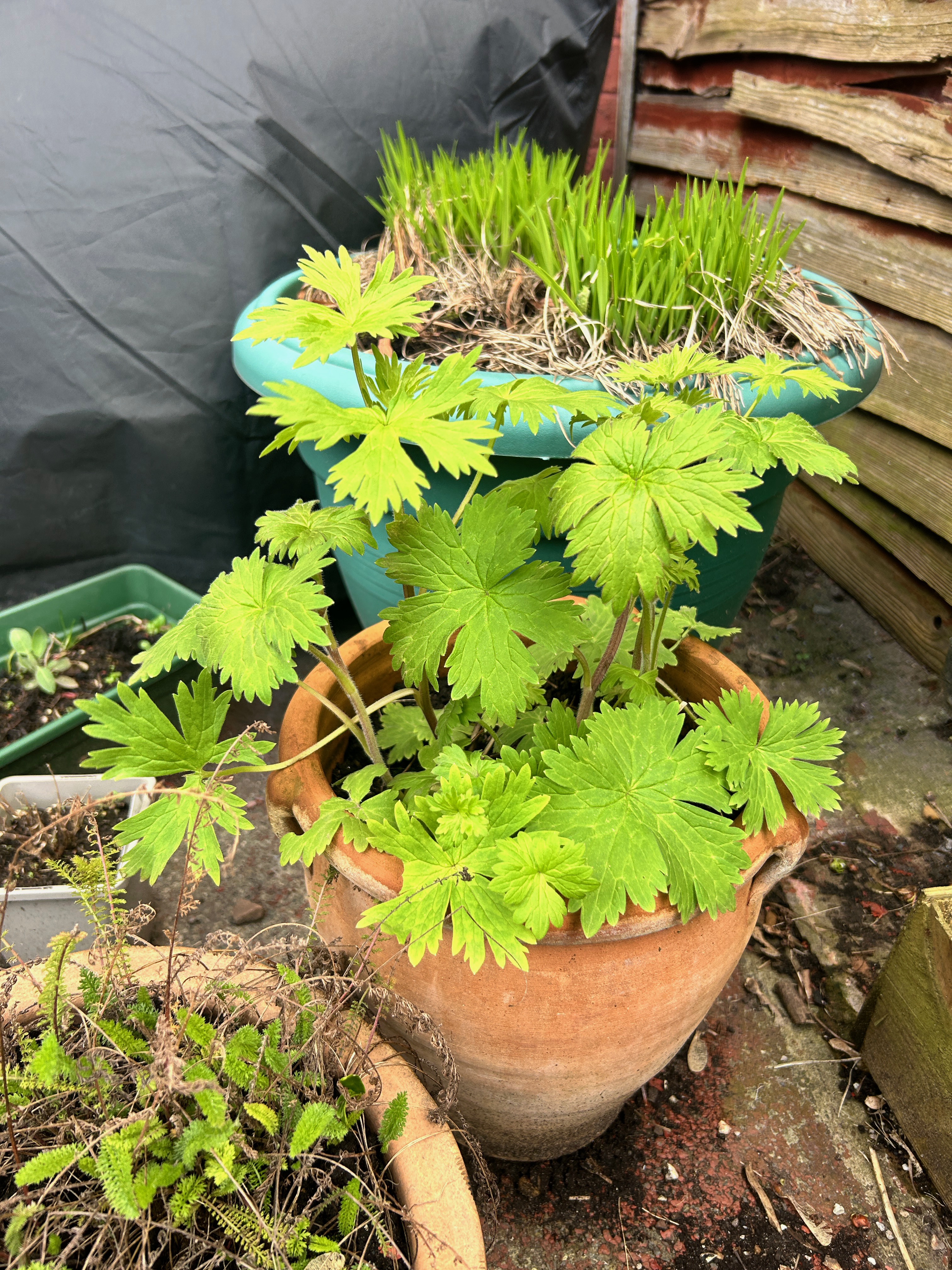The aquilegia are also back and looking much bigger and stronger than last year – and in several more pots than I remember too but that’s the joy of them – waiting to see what new colour combinations they have found for themselves this year and which pots they’ve colonised!