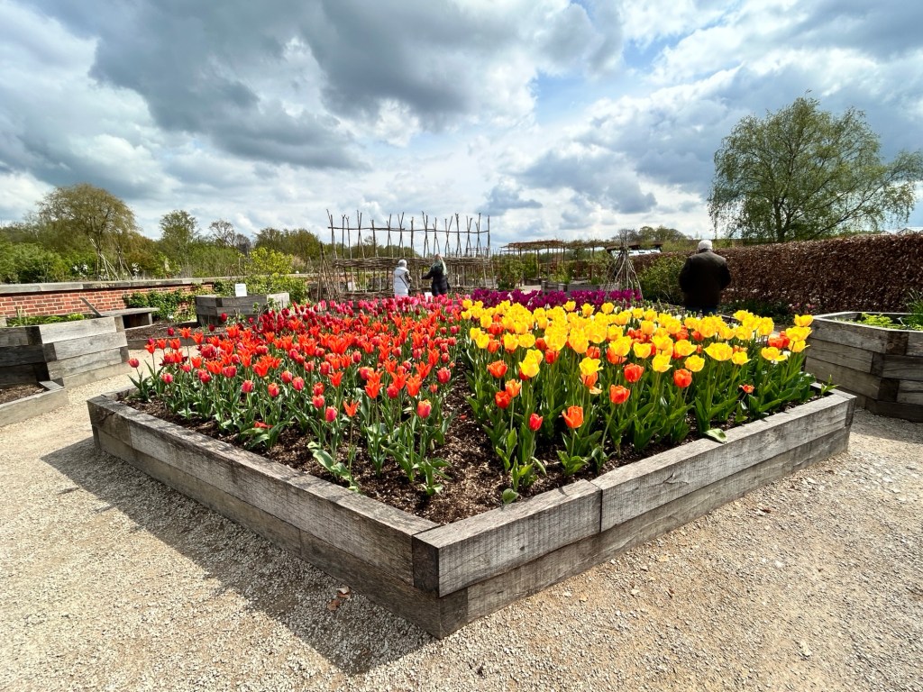 No vegetables this year – last year was terrible apart from the pea harvest and two pumpkins so we’re having a year off and just doing flowers this year. I have a raised bed planted up which was inspired by RHS Bridgewater’s tulip display from last year – fingers crossed it all comes up! I planted the bulbs back in November and they’ve been covered up in a raised bed ever since (see previous comment about cats!) but very soon it will be time to put a cage over them and release them from their winter slumber.