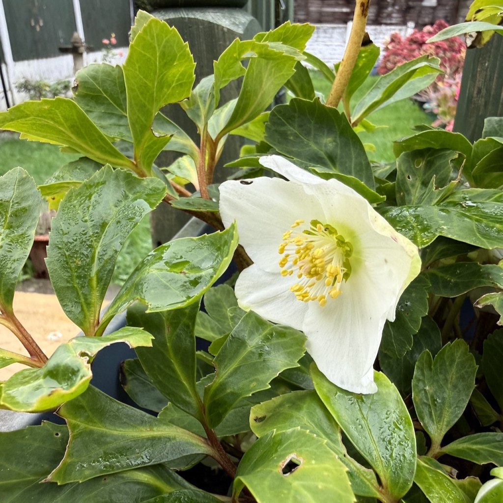 One of my hydrangeas that came with me, it’s now in its pot in a border with two planted hydrangeas, again that I have inherited. None of the inherited ones look like they’ve been pruned in years so I plan to prune them all back hard in February or March and see what happens. My own all responded really well to a good prune last year.