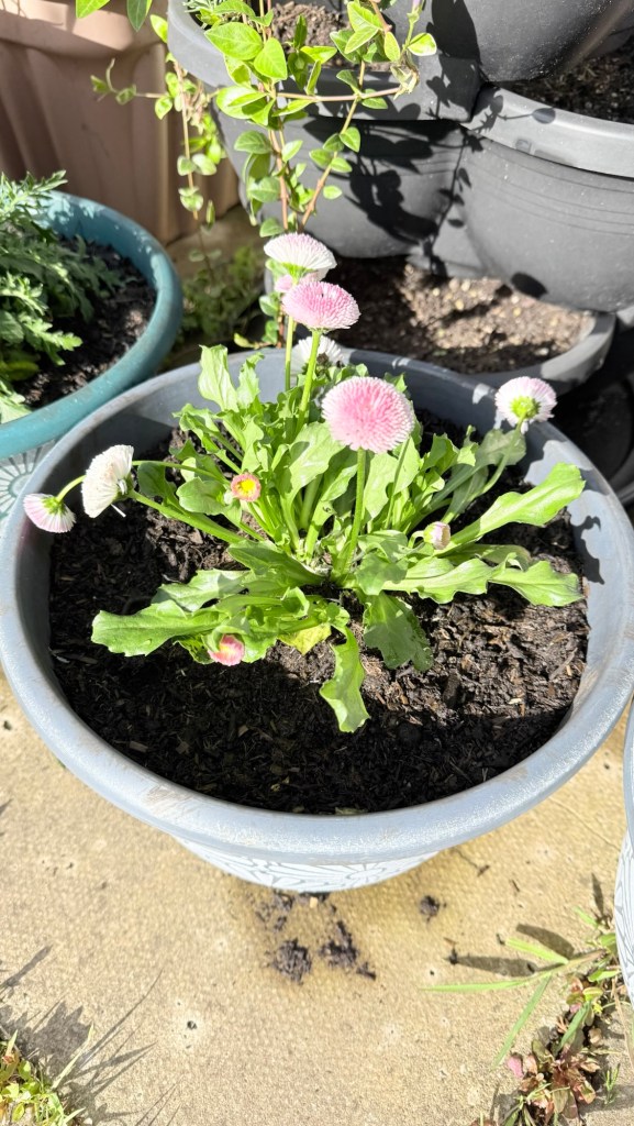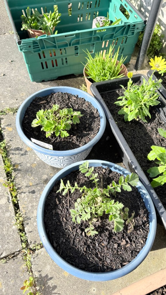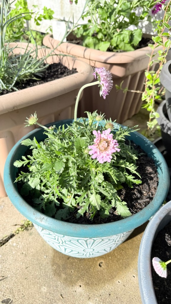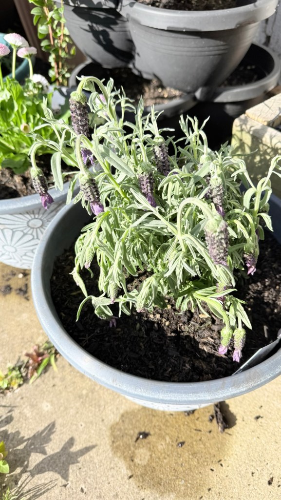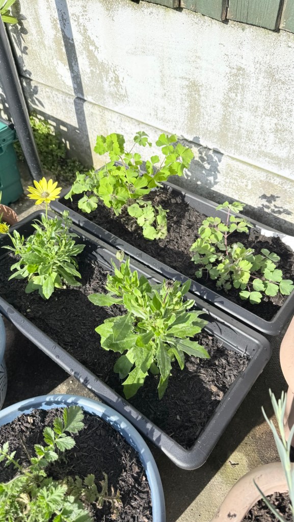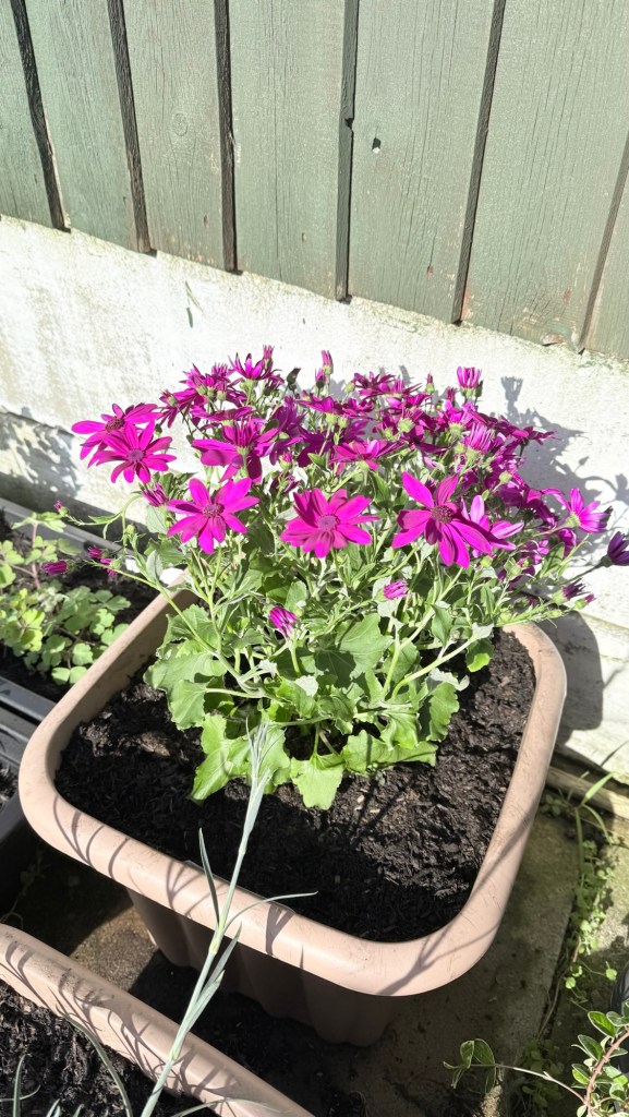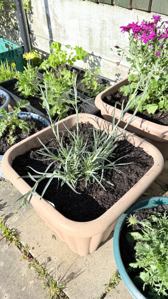 I’ve replaced some favourites that didn’t survive the move and/or winter – Senetti, aquilegia, scabious. And added a few new plants – dianthus Shirley Temple, a couple of osteospermums and a butterfly lavender. I’ve had the osteospermums before but they never last long. Fingers crossed for these.